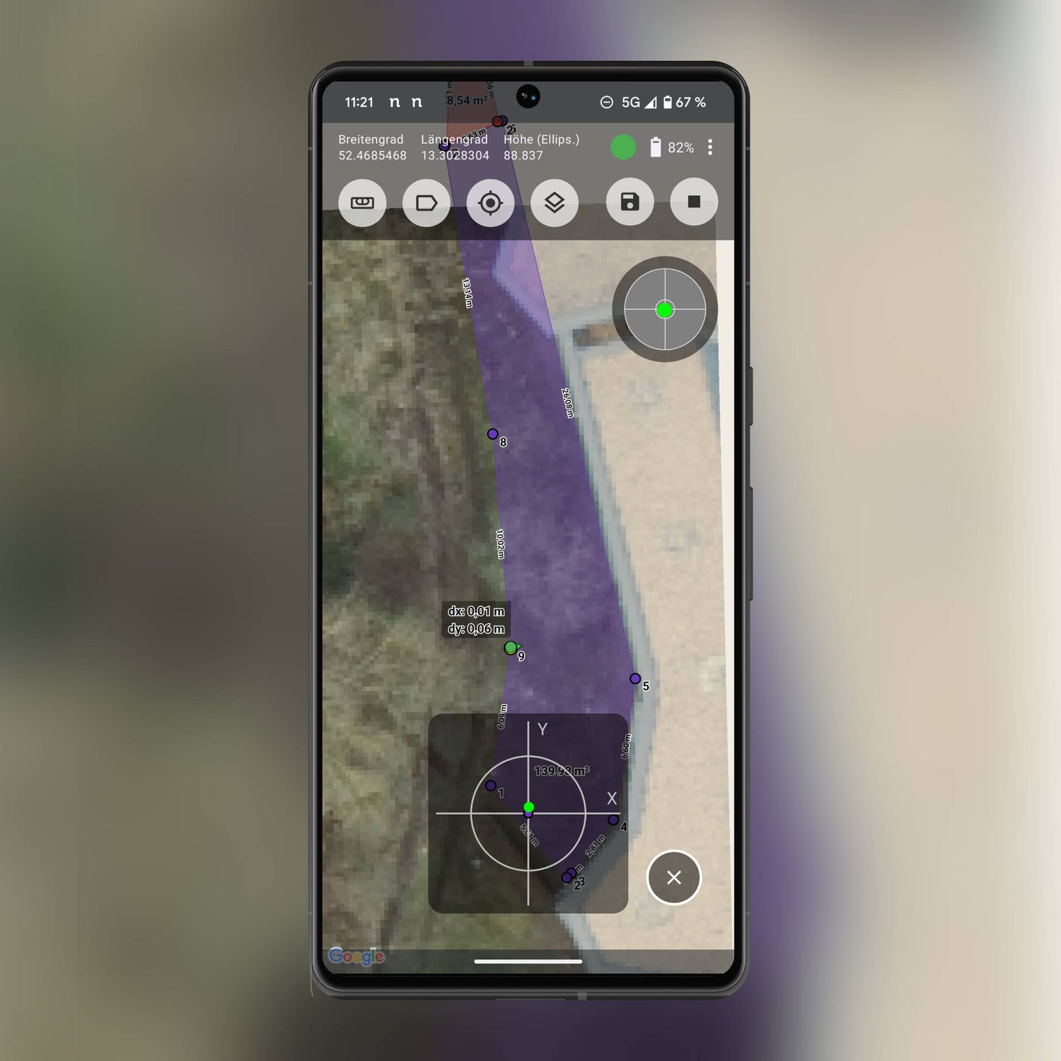 - Genauigkeit: Unser Gerät kann mit einem Korrekturdienst eine Genauigkeit von +/- 2 cm erreichen